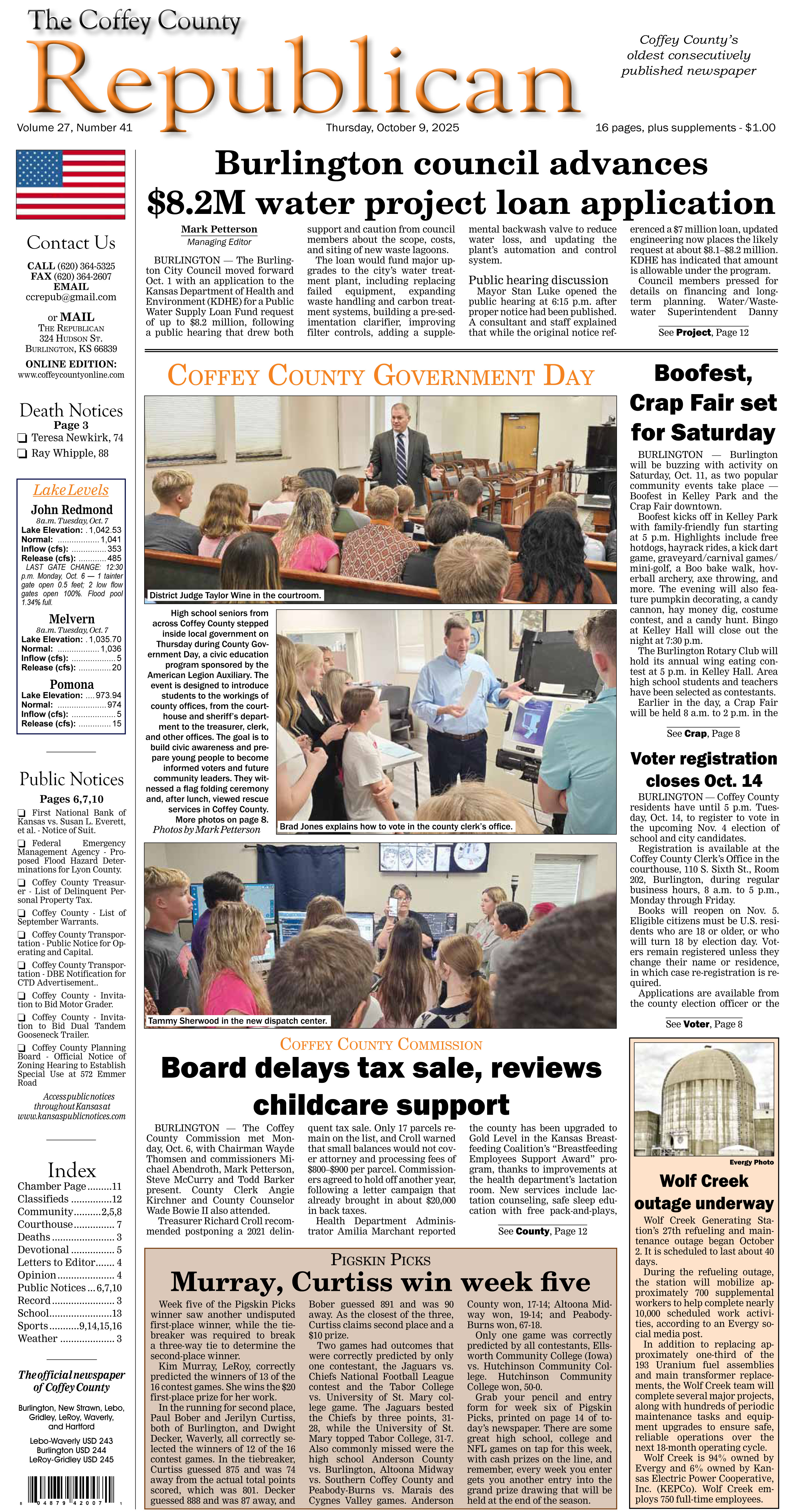 Read about the water project loan advanced by Burlington City Council, in this week’s edition of The Republican, online now.